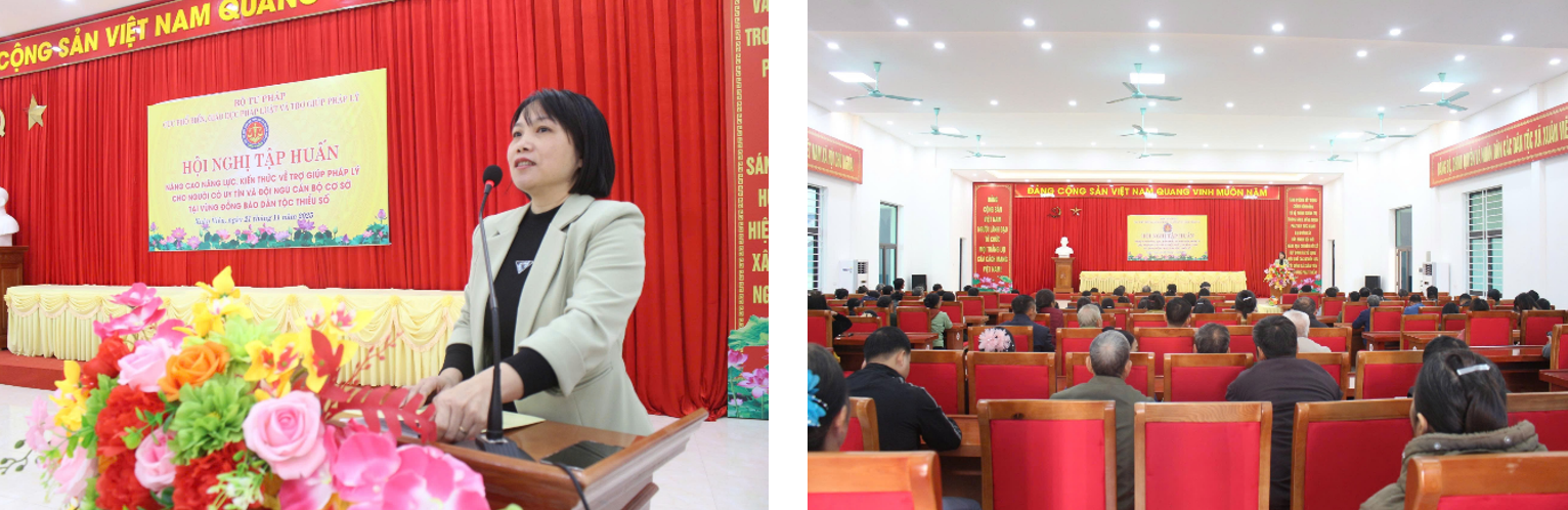 Nâng cao năng lực, kiến thức về trợ giúp pháp lý cho người có uy tín và đội ngũ cán bộ ở cơ sở tại vùng đồng bào dân tộc thiểu số tại tỉnh Phú ThọThực hiện Kế hoạch công tác năm 2025 của Cục Phổ biến, giáo dục pháp luật và Trợ giúp pháp lý (Cục PB&TG) được phê duyệt tại Quyết định số 1133/QĐ-BTP ngày 02/4/2025 của Bộ trưởng Bộ Tư pháp, ngày 21/11/2025, Cục PB&TG đã phối hợp cùng Sở Tư pháp tỉnh Phú Thọ tổ chức 03 Hội nghị tập huấn nâng cao năng lực, kiến thức về trợ giúp pháp lý cho người có uy tín và đội ngũ cán bộ cơ sở tại các xã vùng đồng bào dân tộc thiểu số. Ba điểm tổ chức tại xã Xuân Viên, xã Yên Lập và xã Sơn Hùng đã trở thành nơi hội tụ của hàng trăm đại biểu là cán bộ thôn bản, chi hội đoàn thể, đại diện Mặt trận Tổ quốc, Hội Phụ nữ, Hội Nông dân, Hội Cựu chiến binh, Đoàn Thanh niên, cùng nhiều người có uy tín – những người được cộng đồng tin tưởng và xem là “điểm tựa” trong các hoạt động vận động, hòa giải và phổ biến pháp luật tại địa phương.Không khí tập huấn diễn ra nghiêm túc nhưng rất gần gũi, mang đậm nét đặc trưng vùng miền của Phú Thọ. Phát biểu tại Hội nghị, bà Nguyễn Thị Bích Thủy – Giám đốc Trung tâm Trợ giúp pháp lý Nhà nước số 1 tỉnh Phú Thọ – đã gửi lời cảm ơn tới Cục PB&TG vì đã lựa chọn Phú Thọ là một trong những địa phương tổ chức Hội nghị. Bà nhấn mạnh: “Đồng bào dân tộc thiểu số của tỉnh Phú Thọ vẫn gặp rất nhiều khó khăn trong tiếp cận pháp luật. Chúng tôi làm công tác trợ giúp pháp lý nhiều năm, thấy rằng những tranh chấp liên quan đến đất đai, hôn nhân gia đình, vay mượn dân sự hay tranh chấp sản xuất kinh doanh đều có xu hướng gia tăng. Đồng bào dân tộc thiểu số vẫn là nhóm có nhiều khó khăn trong tiếp cận pháp luật. Chính vì vậy, khi cán bộ thôn bản và người có uy tín được tập huấn bài bản, nắm rõ quy trình, hiểu rõ quyền của người dân, thì công tác trợ giúp pháp lý sẽ lan tỏa nhanh hơn, đúng hơn. Trung tâm Trợ giúp pháp lý tỉnh cam kết đồng hành và hỗ trợ tối đa để không người dân nào bị bỏ lại phía sau.” Sự khẳng định này tạo niềm tin cho các cán bộ cơ sở – những người trực tiếp kết nối giữa chính sách pháp luật và đời sống.