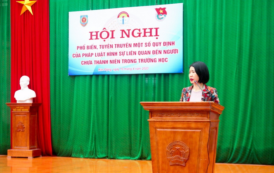 Ngày 10/4/2023, Sở Tư pháp đã chủ trì, phối hợp với Sở Giáo dục và Đào tạo và Tỉnh Đoàn tổ chức Hội nghị trực tiếp phổ biến, truyên truyền một số quy định của pháp luật hình sự liên quan đến người chưa thành niên tại Trường THPT Kim Động - tỉnh Hưng Yên. Dự Hội nghị có toàn thể giáo viên và hơn 1.300 học sinh (Khối lớp 10, 11 và 12) của Trường THPT Kim Động.