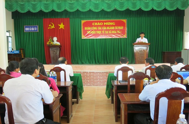Trong chuỗi các hoạt động tại tỉnh Sóc Trăng, Vụ Phổ biến, giáo dục pháp luật, Bộ Tư pháp đã phối hợp với Sở Tư pháp tỉnh Sóc Trăng tổ chức cho đại biểu dự Hội nghị tập huấn nghiệp vụ khu vực phía Nam đi tìm hiểu thực tế công tác phổ biến, giáo dục pháp luật (PBGDPL), hòa giải ở cơ sở, xây dựng xã đạt chuẩn tiếp cận pháp luật tại xã Hòa Tú 1, huyện Mỹ Xuyên. Tham gia Đoàn đi thực tế có đồng chí Phan Hồng Nguyên – Phó Vụ trưởng Vụ Phổ biến, giáo dục pháp luật, đại diện Lãnh đạo Sở Tư pháp, Phòng Phổ biến, giáo dục pháp luật thuộc Sở Tư pháp các tỉnh, thành phố khu vực phía Nam. Tham dự buổi làm việc với Đoàn đi thực tế có Lãnh đạo Phòng Tư pháp huyện Mỹ Xuyên cùng đại diện Lãnh đạo Đảng ủy, Ủy ban nhân dân (UBND) xã Hòa Tú 1 và một số báo cáo viên pháp luật, tuyên truyền viên pháp luật, hòa giải viên trên địa bàn.