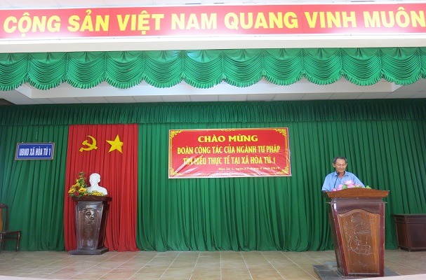 Tại buổi làm việc, các đại biểu nghe đồng chí Trương Hoàng Khai - Chủ tịch UBND xã Hòa Tú 1 thông tin về tình hình phát triển kinh tế - xã hội của địa phương; kết quả công tác PBGDPL, hòa giải ở cơ sở, xây dựng xã đạt chuẩn tiếp cận pháp luật trên địa bàn.