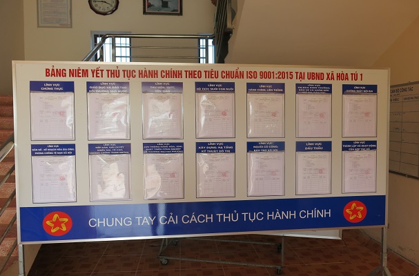 Bảng niêm yết thủ tục hành chính tại UBND xã Hòa Tú 1