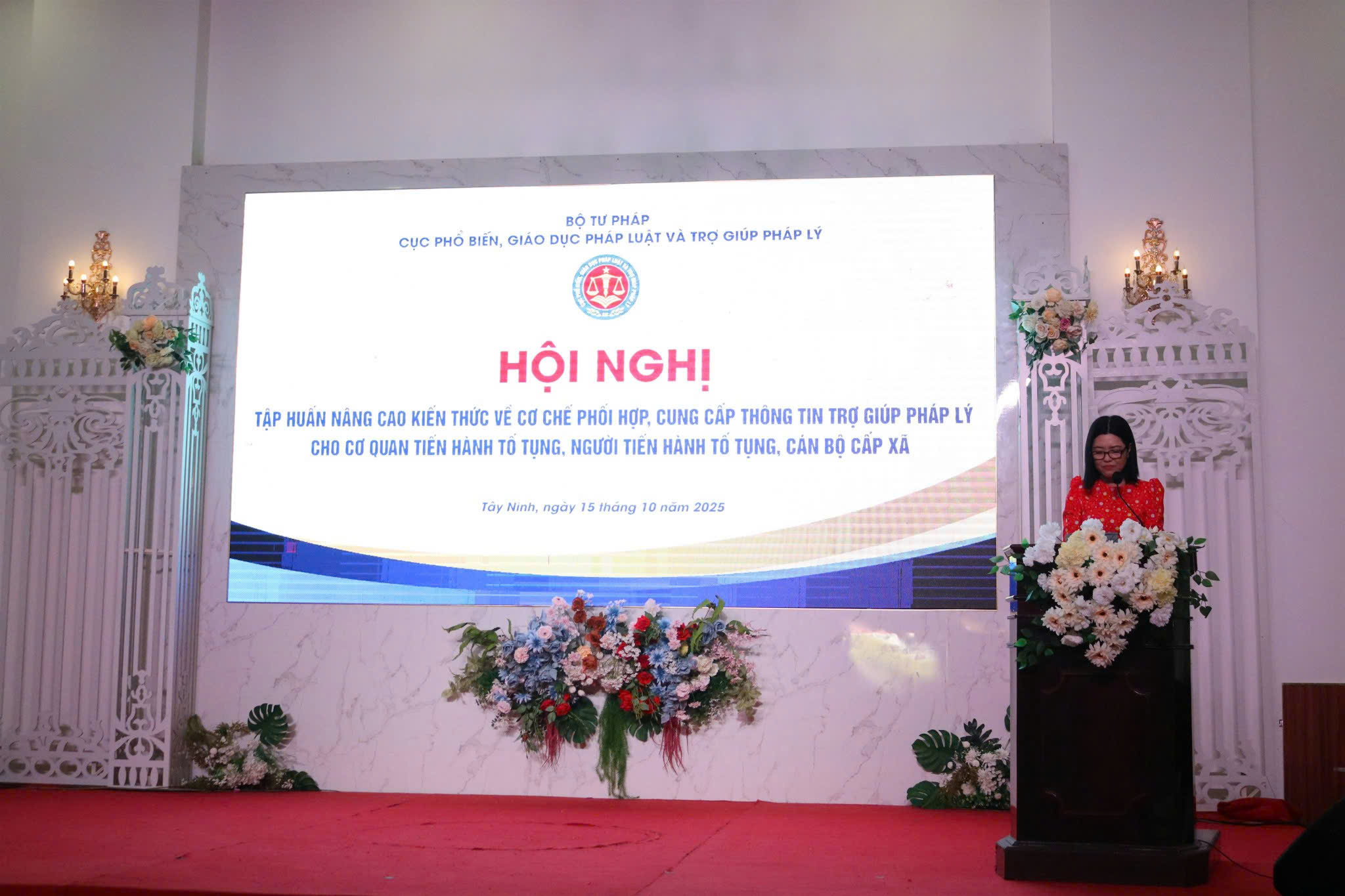 Thực hiện Kế hoạch công tác năm 2025, ngày 15/10/2025, Cục Phổ biến, giáo dục pháp luật và Trợ giúp pháp lý, Bộ Tư pháp tổ chức Hội nghị tập huấn nâng cao kiến thức về cơ chế phối hợp, cung cấp thông tin trợ giúp pháp lý trên địa bàn tỉnh Tây Ninh.